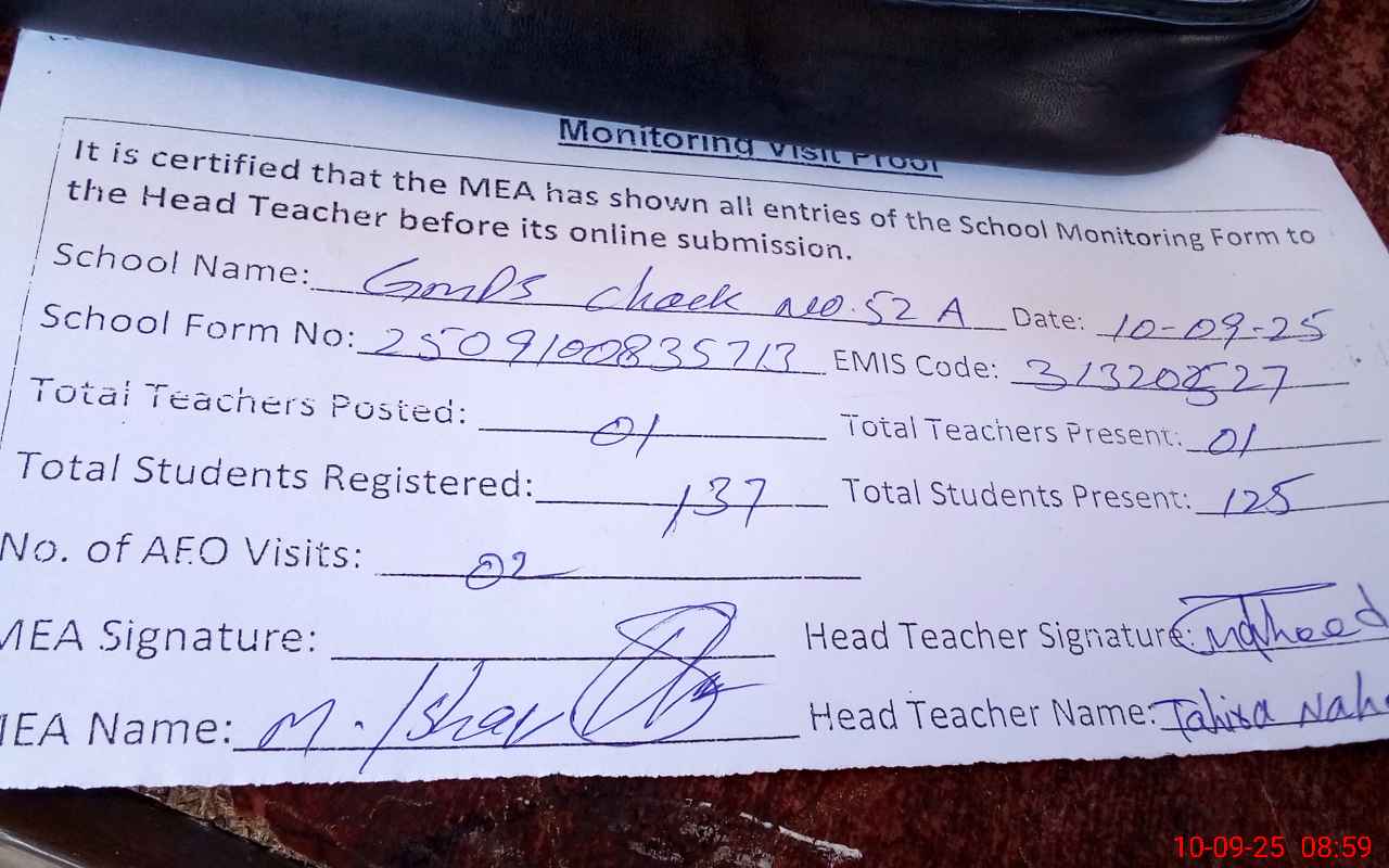 | EMIS Code: 31320527 | Name of School: GMPS CHAK NO.52/A | |||