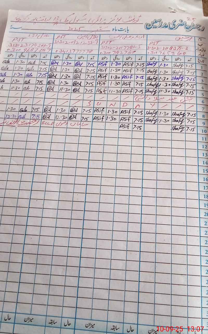 | Name: Mu**** Sh**** Designation: (School Headmaster's/Headmistress's) PST/PTC/JV Phone/Cell Number: 03**** |
