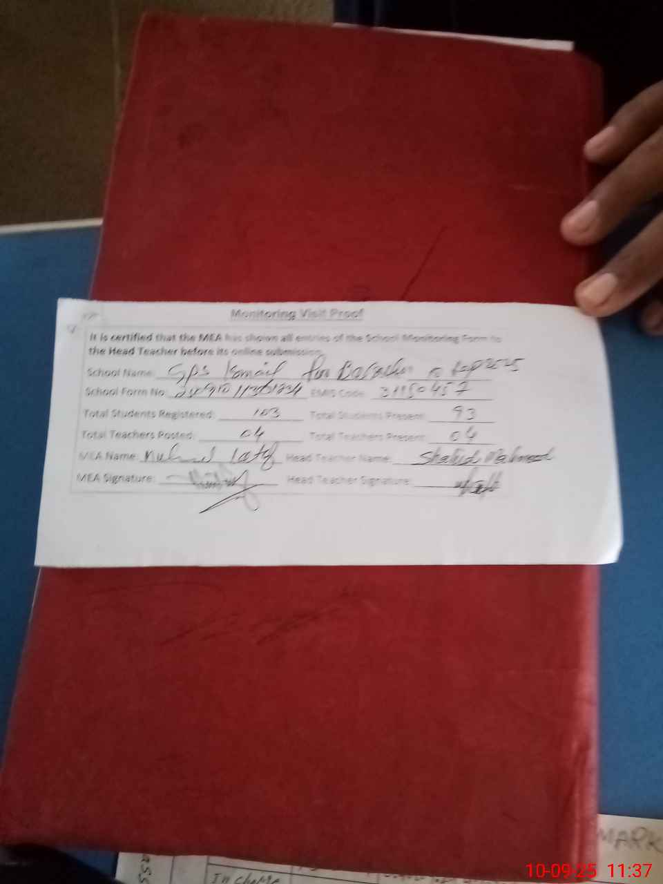 | Name: SH**** MA**** Designation: (School Headmaster's/Headmistress's) PST Phone/Cell Number: 03**** |