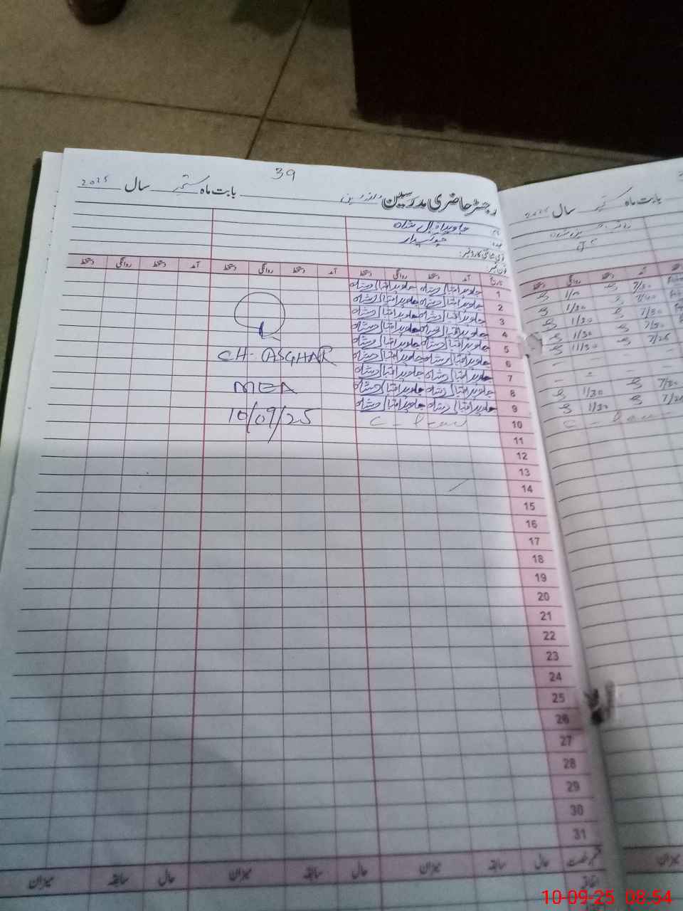 | Monitoring Date: 10-09-2025 | Start Time: 10-09-2025 08:34 AM | End Time: 10-09-2025 09:17 AM | Name of MEA: Mu**** As**** | |