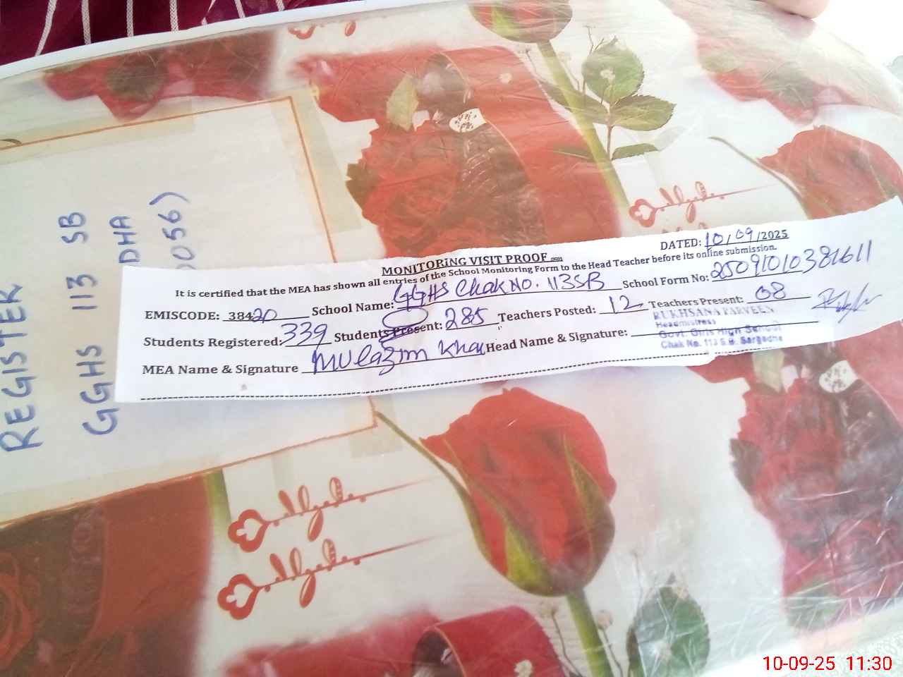 | EMIS Code: 38420056 | Name of School: GGHS CHAK NO.113 SB | |||