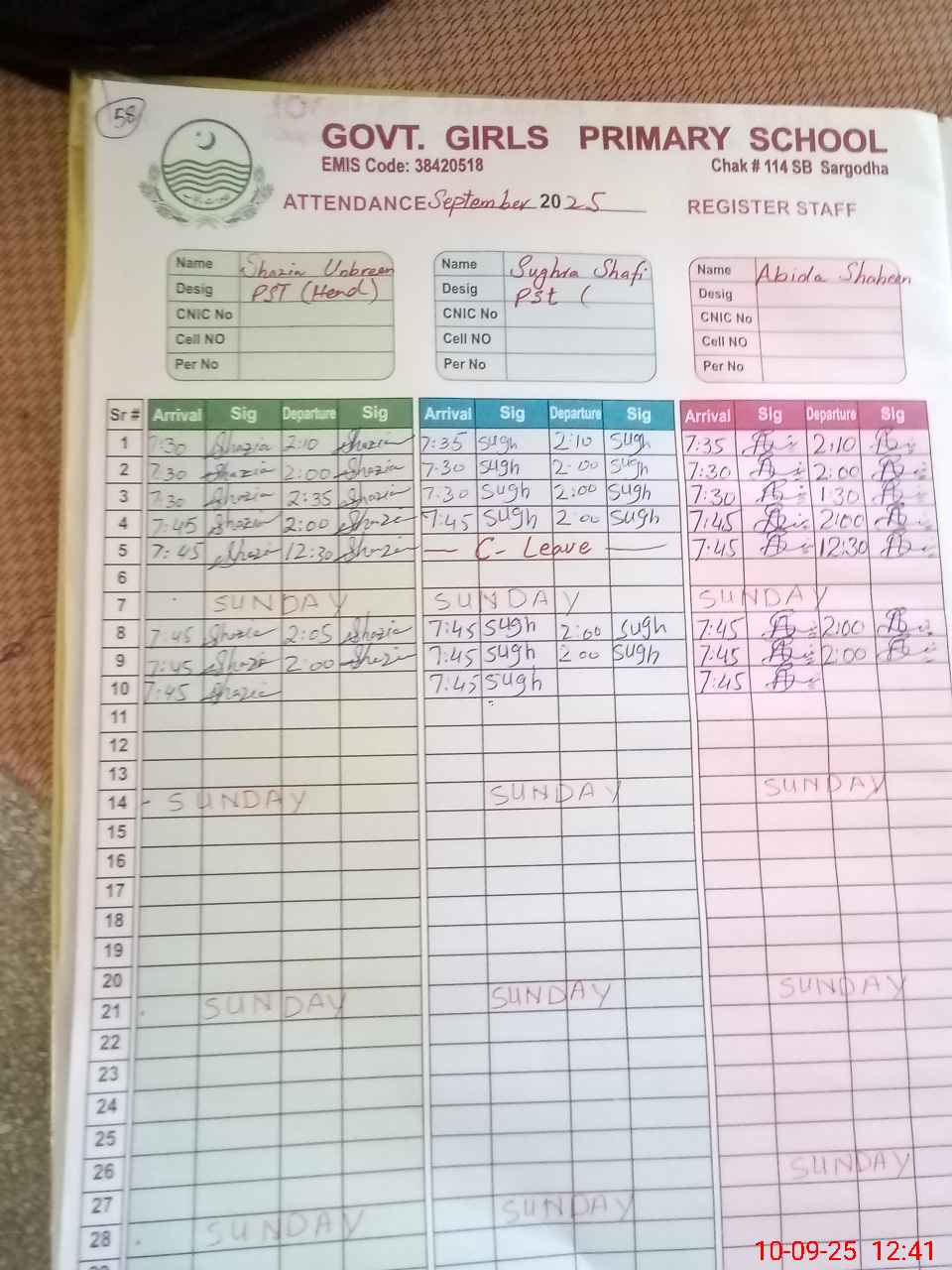 | District: SARGODHA | Tehsil: SARGODHA | Markaz: PULL 111-SB - FEMALE | Level: Primary | |