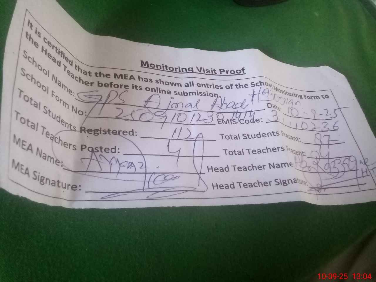 | EMIS Code: 31110236 | Name of School: GPS AJMAL ABAD (BASTI HAZOORA) | |||