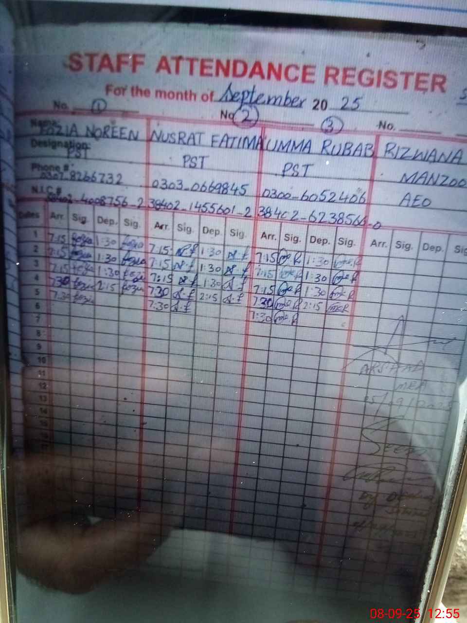 | Name: FO**** NO**** Designation: (School Headmaster's/Headmistress's) PST Phone/Cell Number: 03**** |