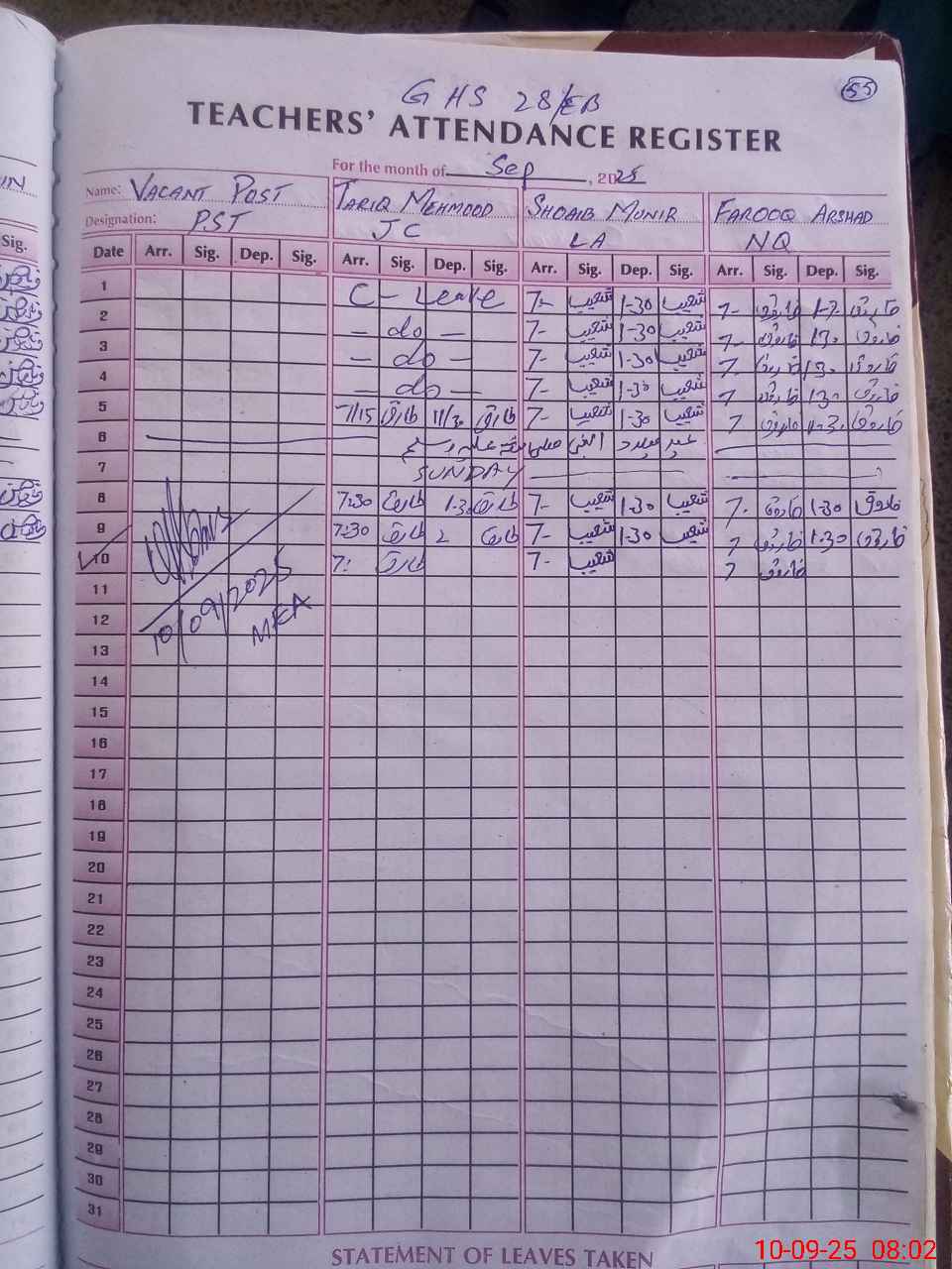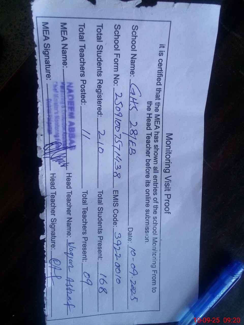 | EMIS Code: 39220010 | Name of School: GHS 28 EB TEH ARIF WALA | |||