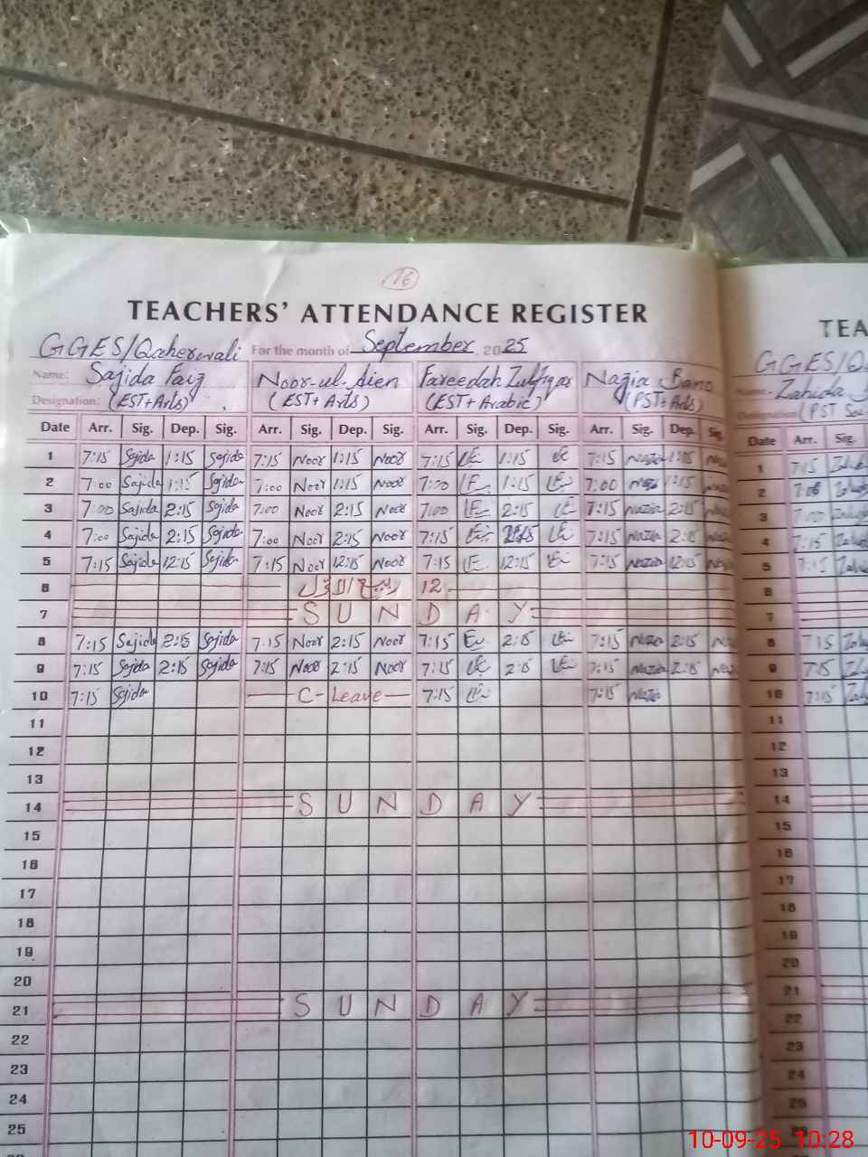 | Leave | Duty | Absent | Maternity | Medical | Ex- Pak |