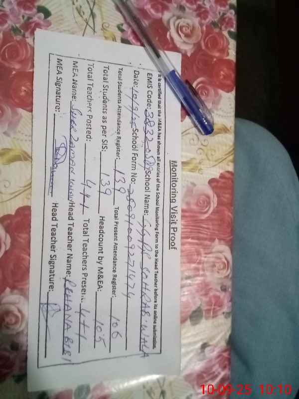 | Attendance Register | Head Teacher | MEA with School | Visit Proof |