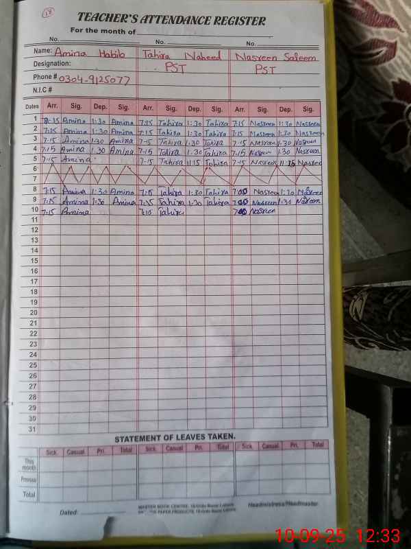 | Name: AM**** HA**** Designation: (School Headmaster's/Headmistress's) PST Phone/Cell Number: 03**** |