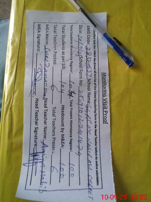 | Attendance Register | Head Teacher | MEA with School | Visit Proof |