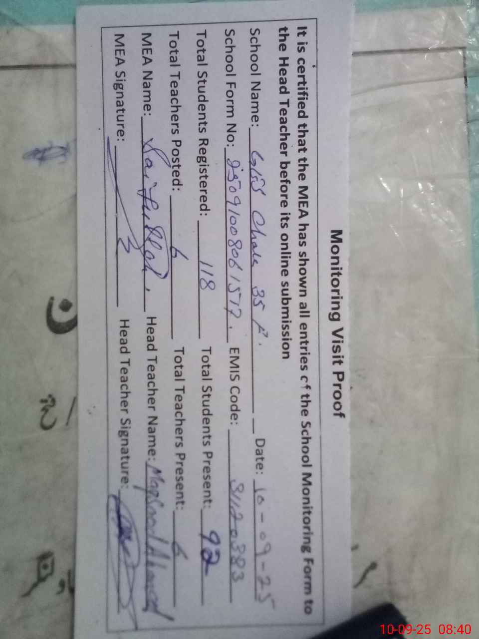 | EMIS Code: 31120383 | Name of School: GES CHAK NO.35/F | |||