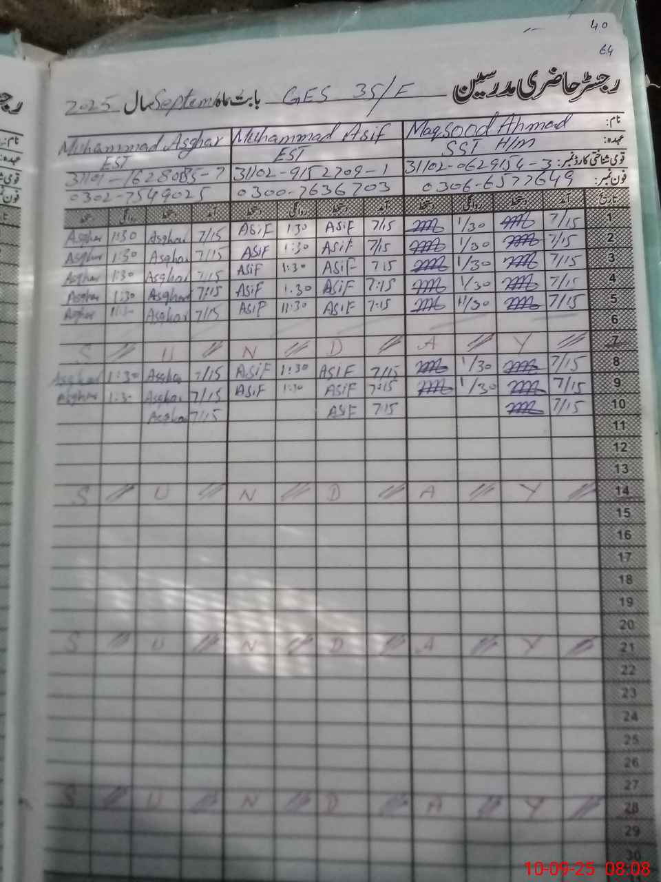 | Name: Mo**** As**** Designation: (School Headmaster's/Headmistress's) EST Phone/Cell Number: 03**** |