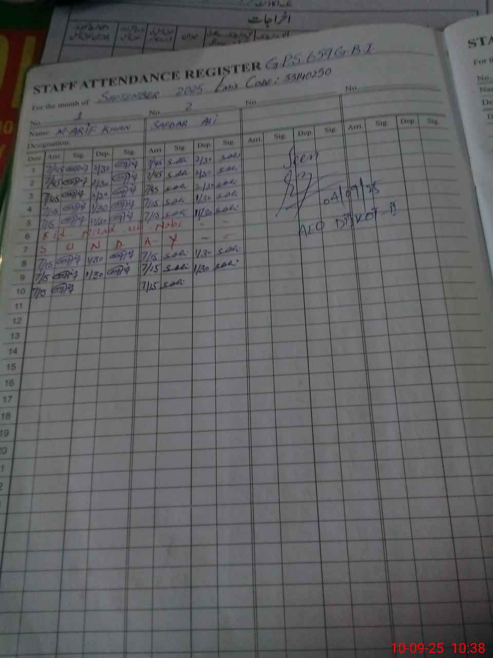 | CNIC | Full Name | Designation | R/C | Absence During Last Calender Month |