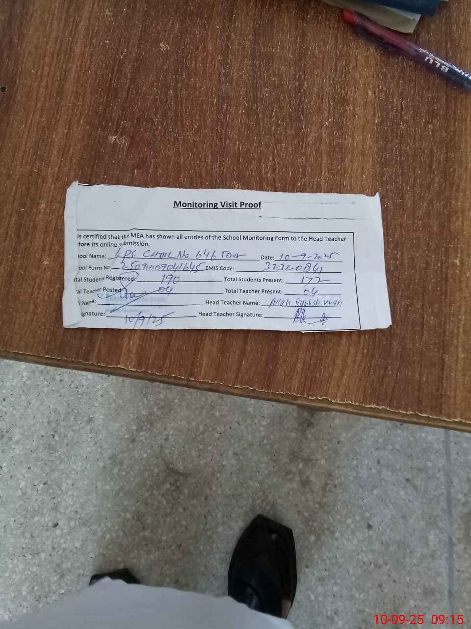 | EMIS Code: 32320841 | Name of School: GPS CHAK NO.646 TDA | |||