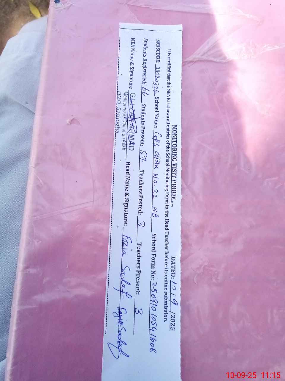 | EMIS Code: 38420376 | Name of School: GPS CHAK NO.32 NB | |||