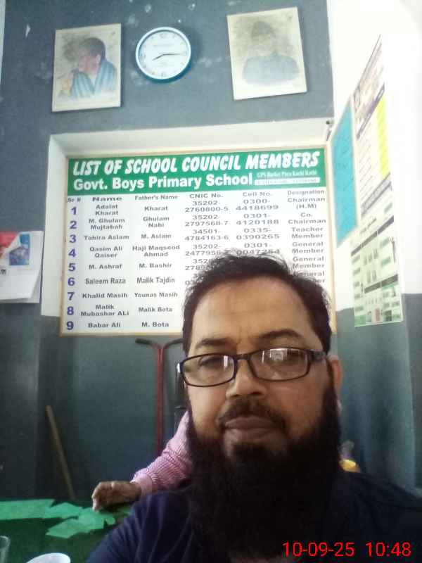 | Name: Ad**** Ma**** Designation: (School Headmaster's/Headmistress's) Head Master Phone/Cell Number: 03**** |