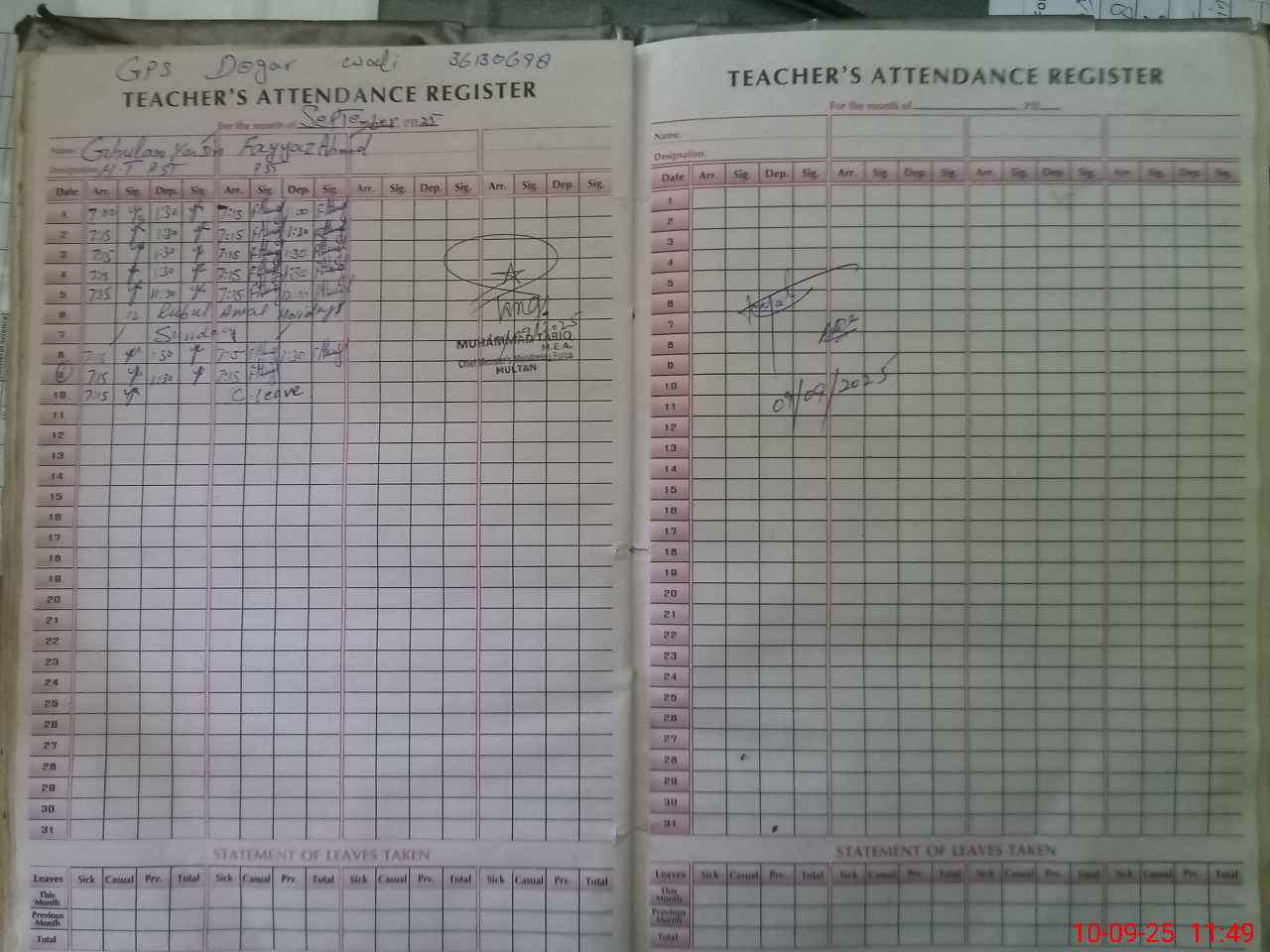 | Name: GH**** YA**** Designation: (School Headmaster's/Headmistress's) PST Phone/Cell Number: 03**** |