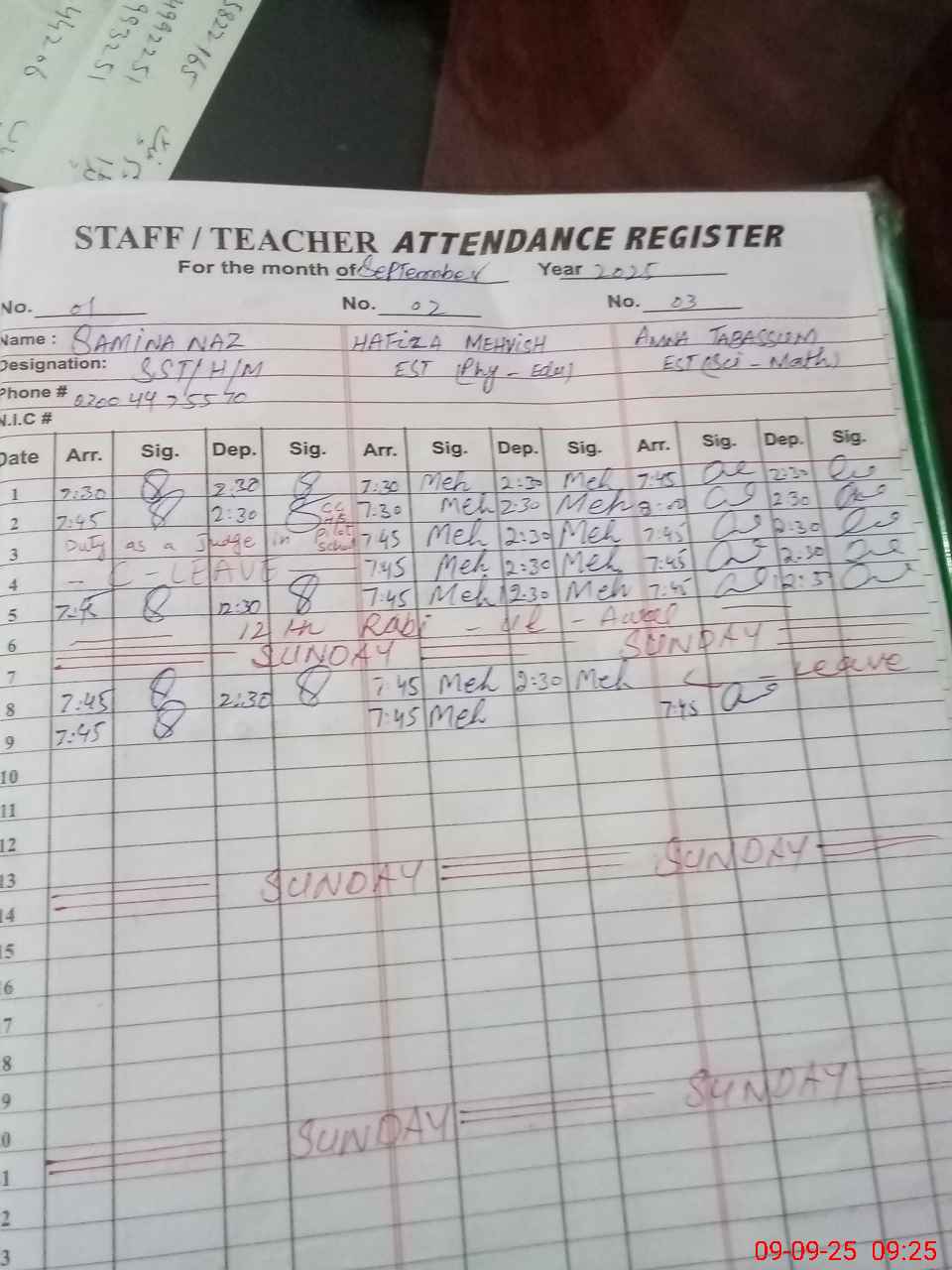 | Name: SA**** NA**** Designation: (School Headmaster's/Headmistress's) Head Mistress Phone/Cell Number: 03**** |