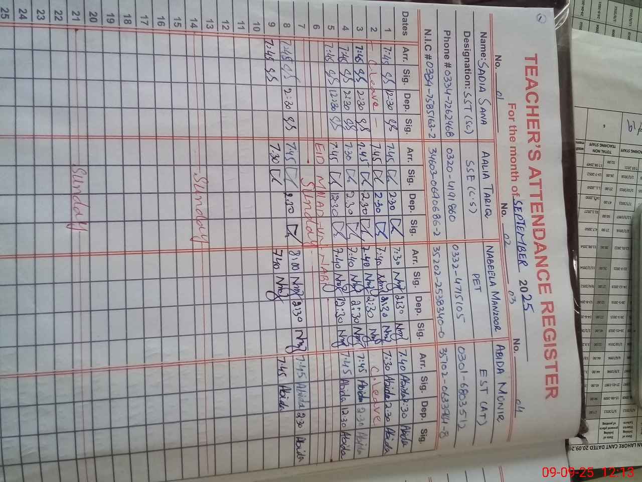 | Name: Gh**** Fi**** Designation: (School Headmaster's/Headmistress's) Incharge Principal Phone/Cell Number: 03**** |