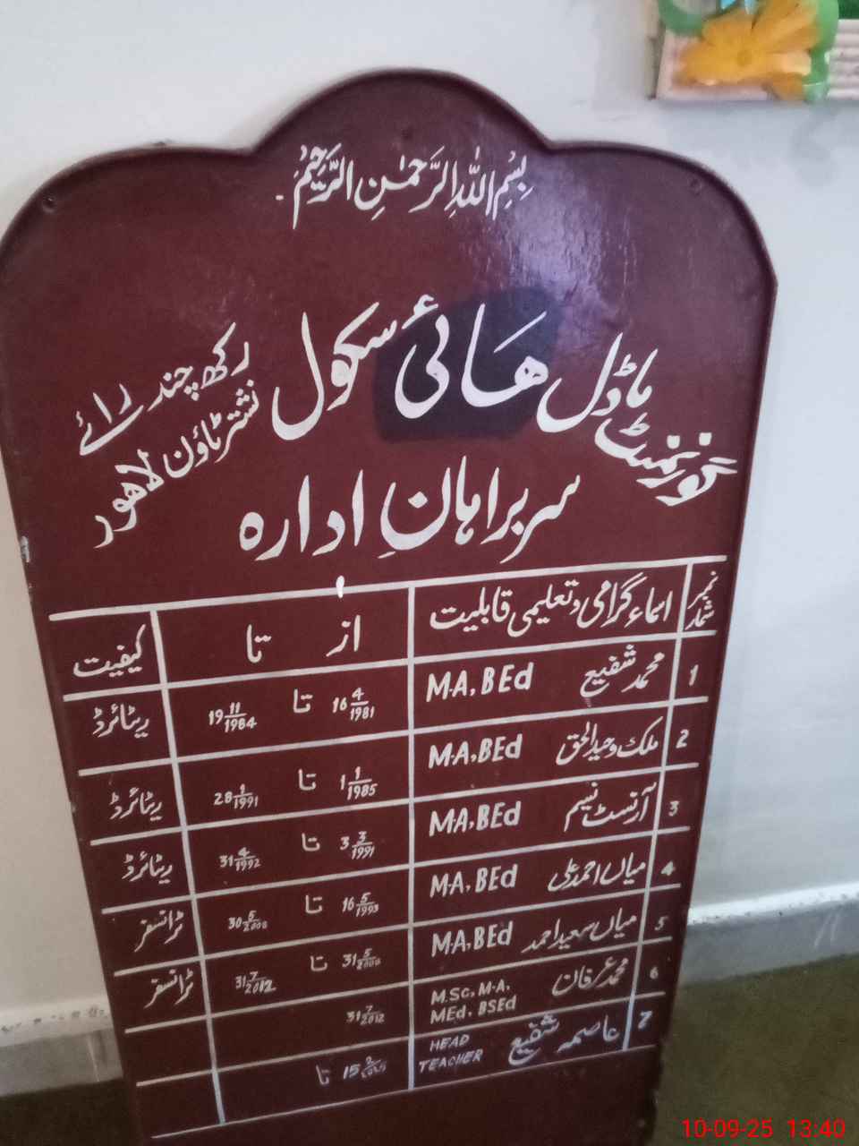 | Name: As**** Sh**** Designation: (School Headmaster's/Headmistress's) Incharge Headmistress Phone/Cell Number: 03**** |