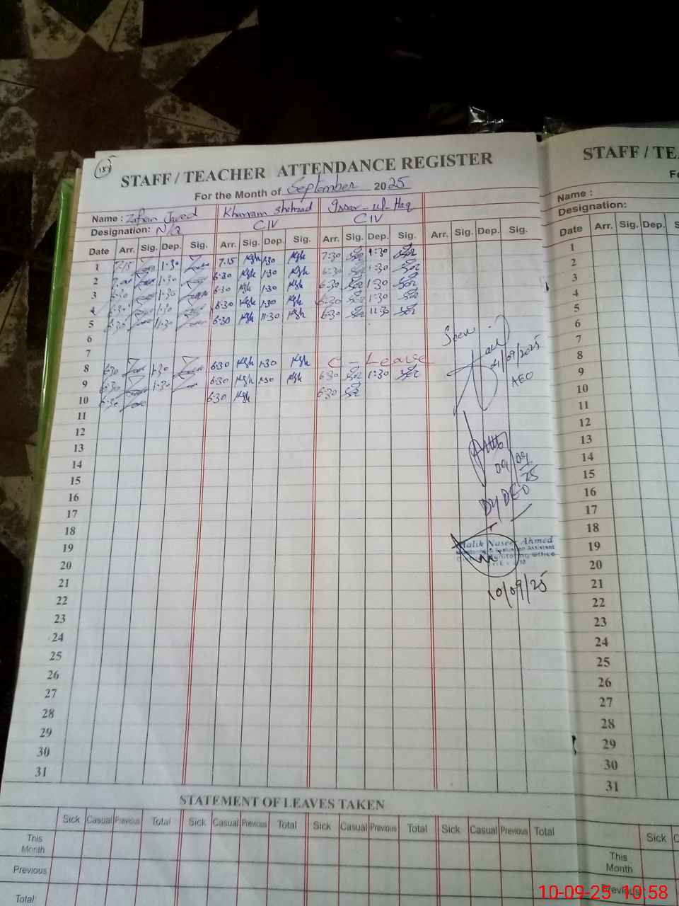 | CNIC | Full Name | Designation | R/C | Absence During Last Calender Month |