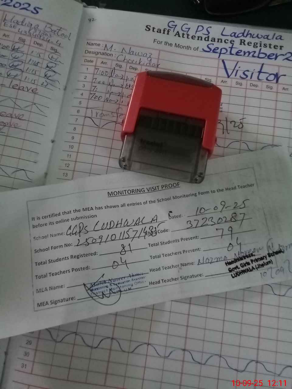 | EMIS Code: 37230287 | Name of School: GGPS LUDHWALA | |||
