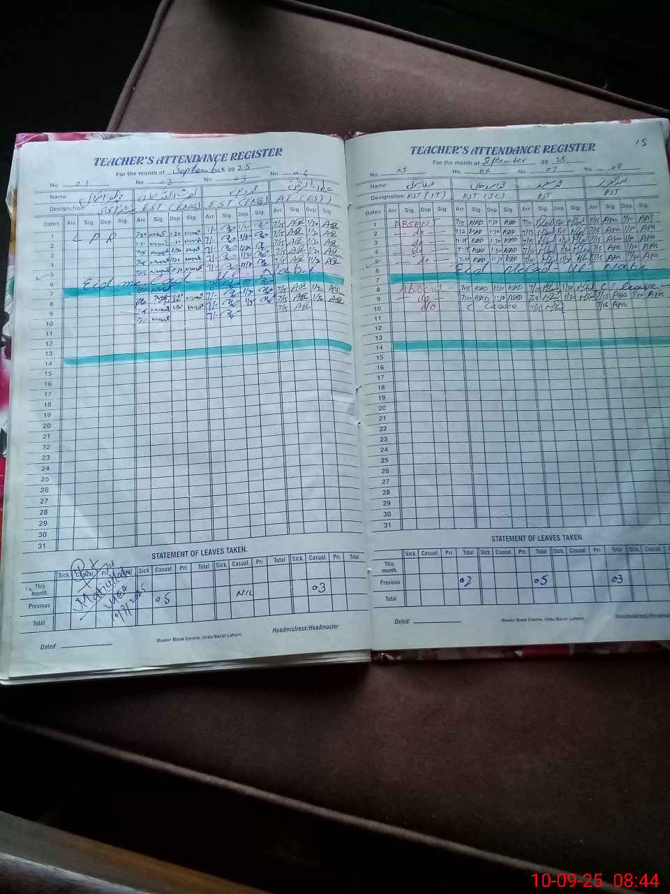 | Leave | Duty | Absent | Maternity | Medical | Ex- Pak |
