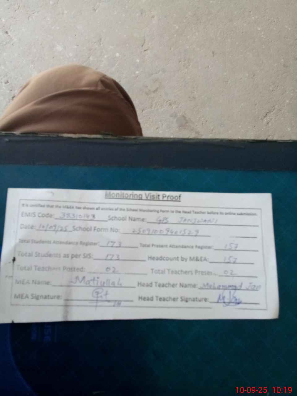 | EMIS Code: 38310143 | Name of School: GPS JANJWANI | |||