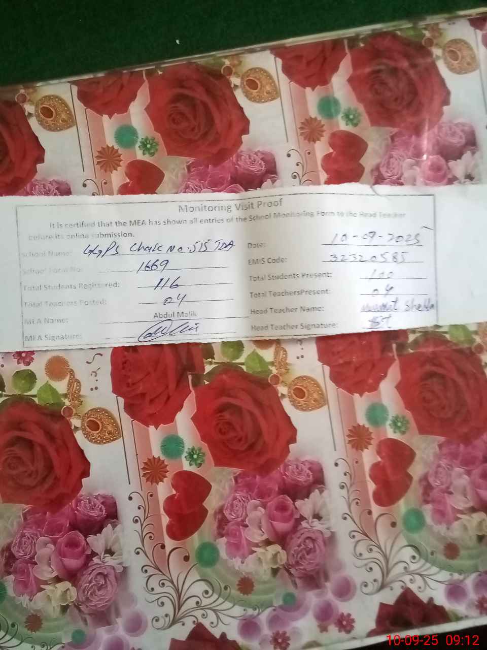 | Certified that this School was Inspected by the Undersigned MEA/DMO Today and the Information Stated Above is as Per Record. | |||||