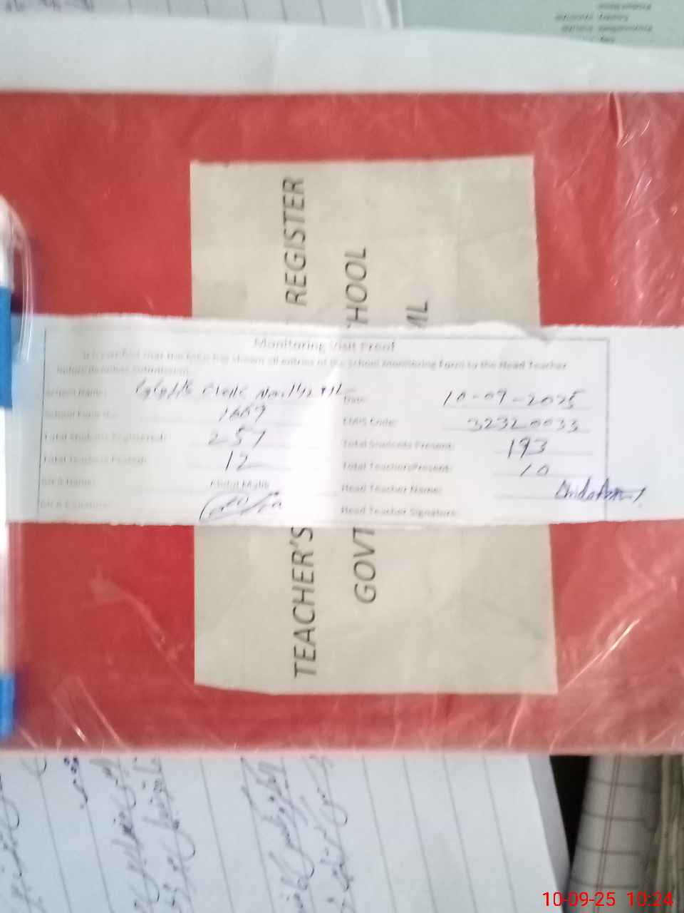 | Attendance Register | Head Teacher | MEA with School | Visit Proof |