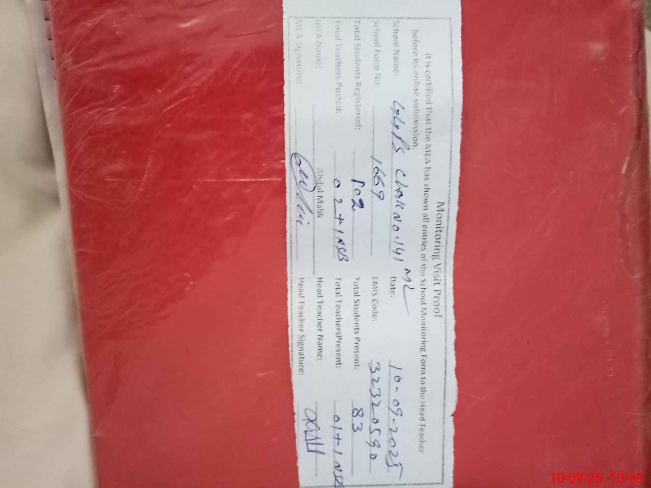 | Attendance Register | Head Teacher | MEA with School | Visit Proof |