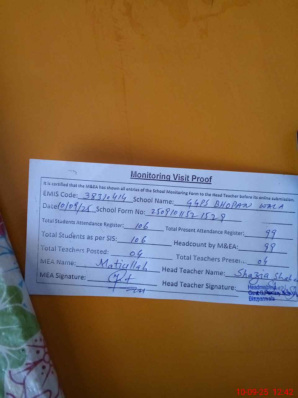 | EMIS Code: 38310414 | Name of School: GGPS BHOPAN WALA | |||