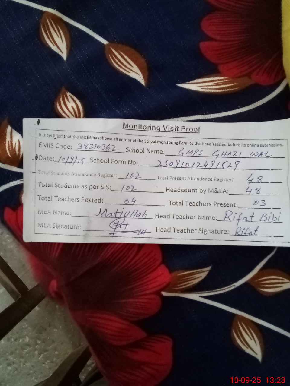 | EMIS Code: 38310362 | Name of School: GMPS GHAZI WAL | |||