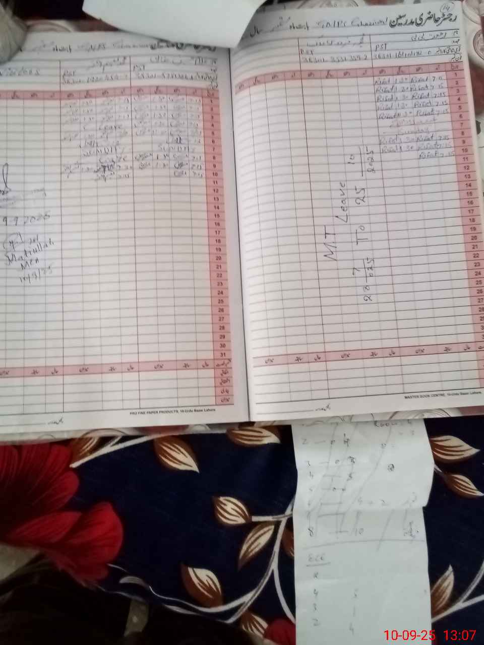 | CNIC | Full Name | Designation | R/C | Absence During Last Calender Month |