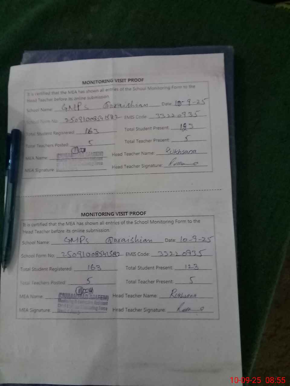 | EMIS Code: 33220935 | Name of School: GMPS QURESHIAN | |||