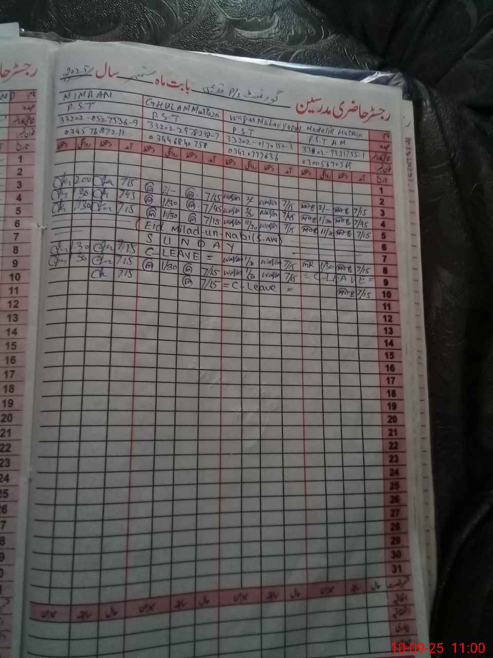 | Name: MU**** HU**** Designation: (School Headmaster's/Headmistress's) PST Phone/Cell Number: 03**** |