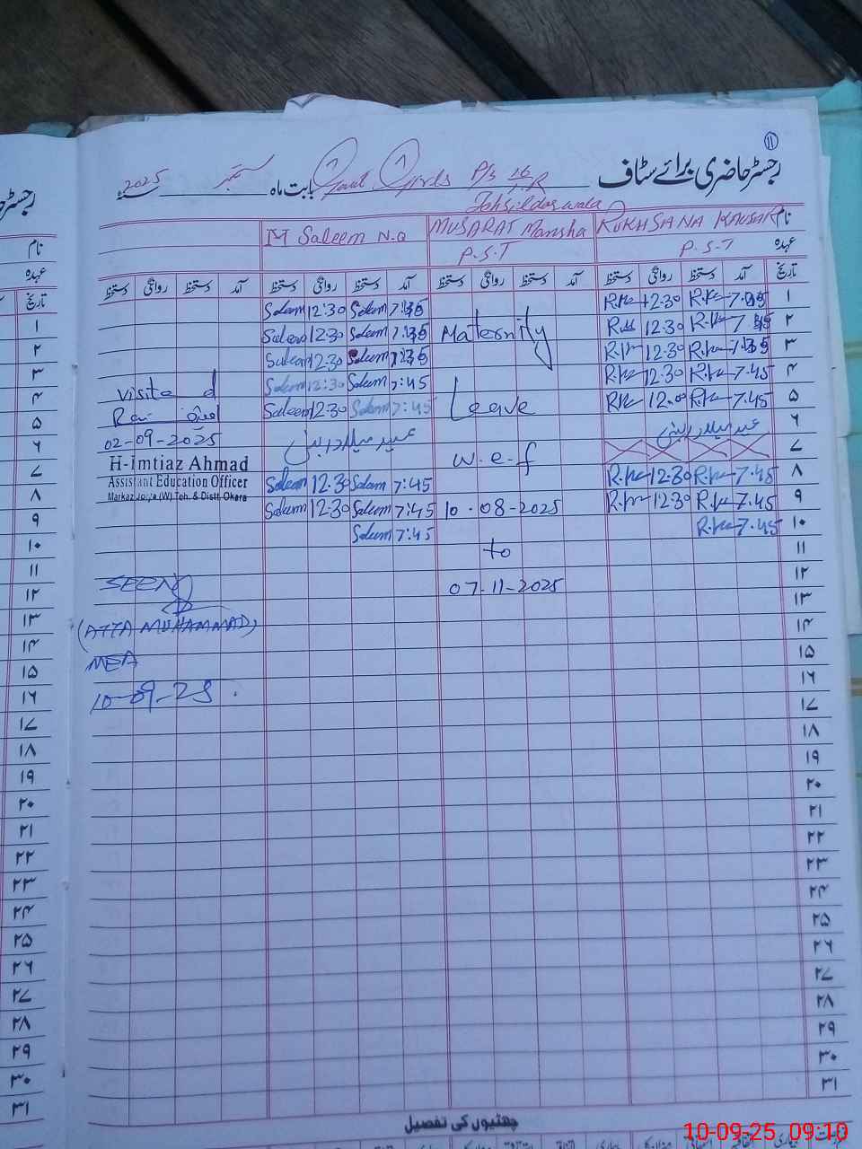 | 35**** | Mu**** Ma**** | PST | Regular | 22 | 0 | 0 | 22 | 0 | 0 | 0 | 0 | 0 | Maternity |