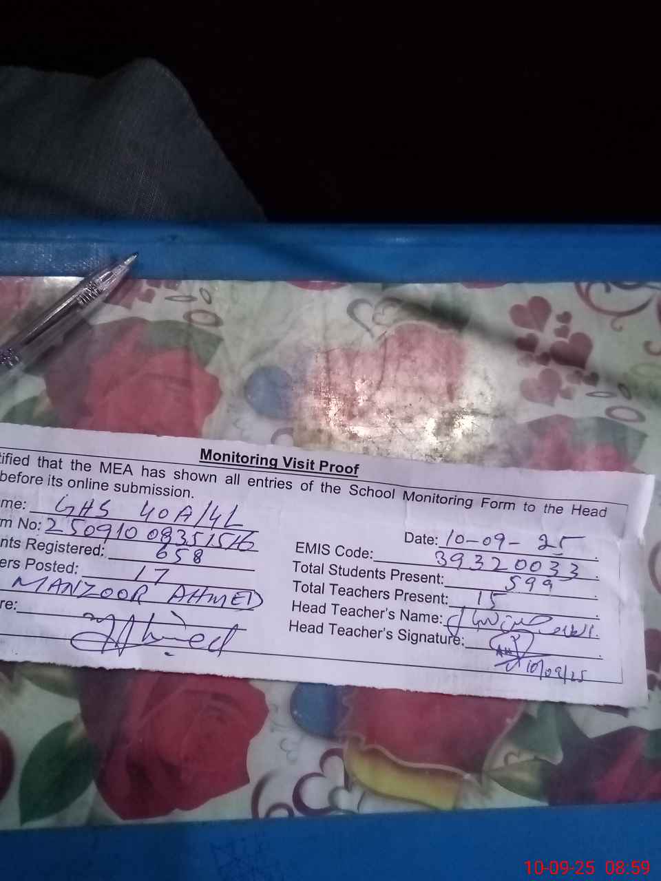 | EMIS Code: 39320033 | Name of School: GHS 40-A/4-L | |||