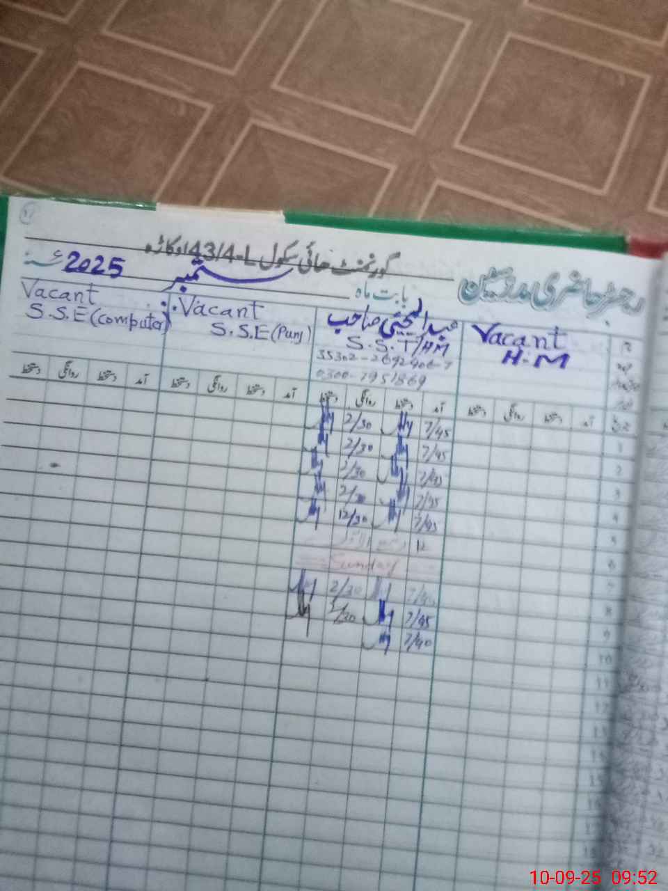 | Name: AB**** Designation: (School Headmaster's/Headmistress's) SST HM Phone/Cell Number: 03**** |
