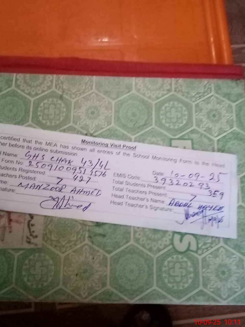 | EMIS Code: 39320293 | Name of School: GHS CHAK 43/4-L | |||