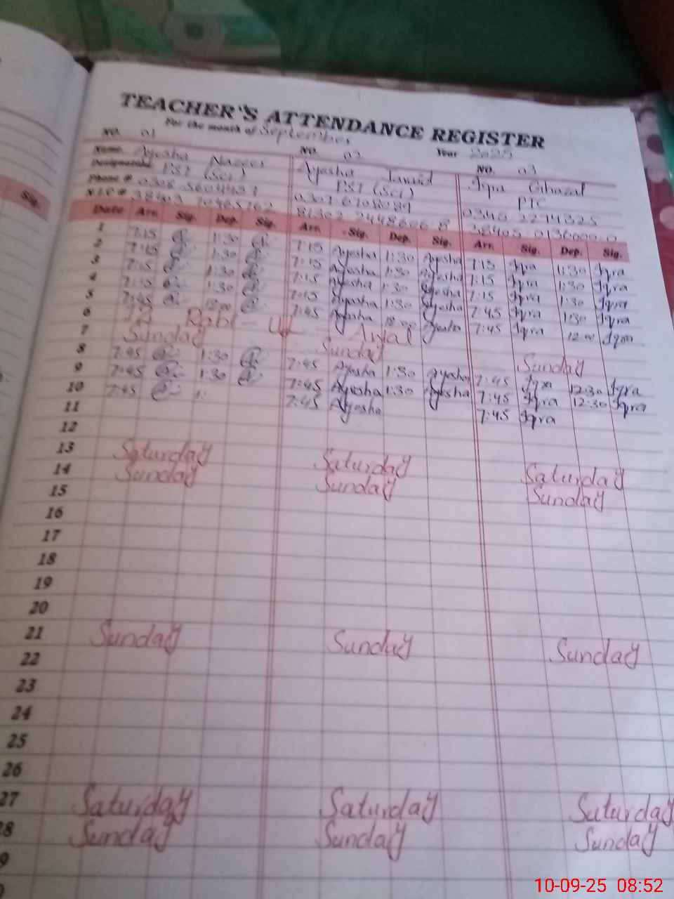 | Name: Ay**** Na**** Designation: (School Headmaster's/Headmistress's) ESE(Sci math) Phone/Cell Number: 03**** |