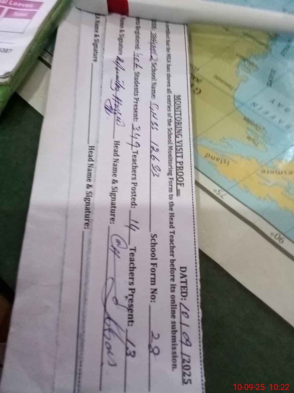 | Attendance Register | Head Teacher | MEA with School | Visit Proof |