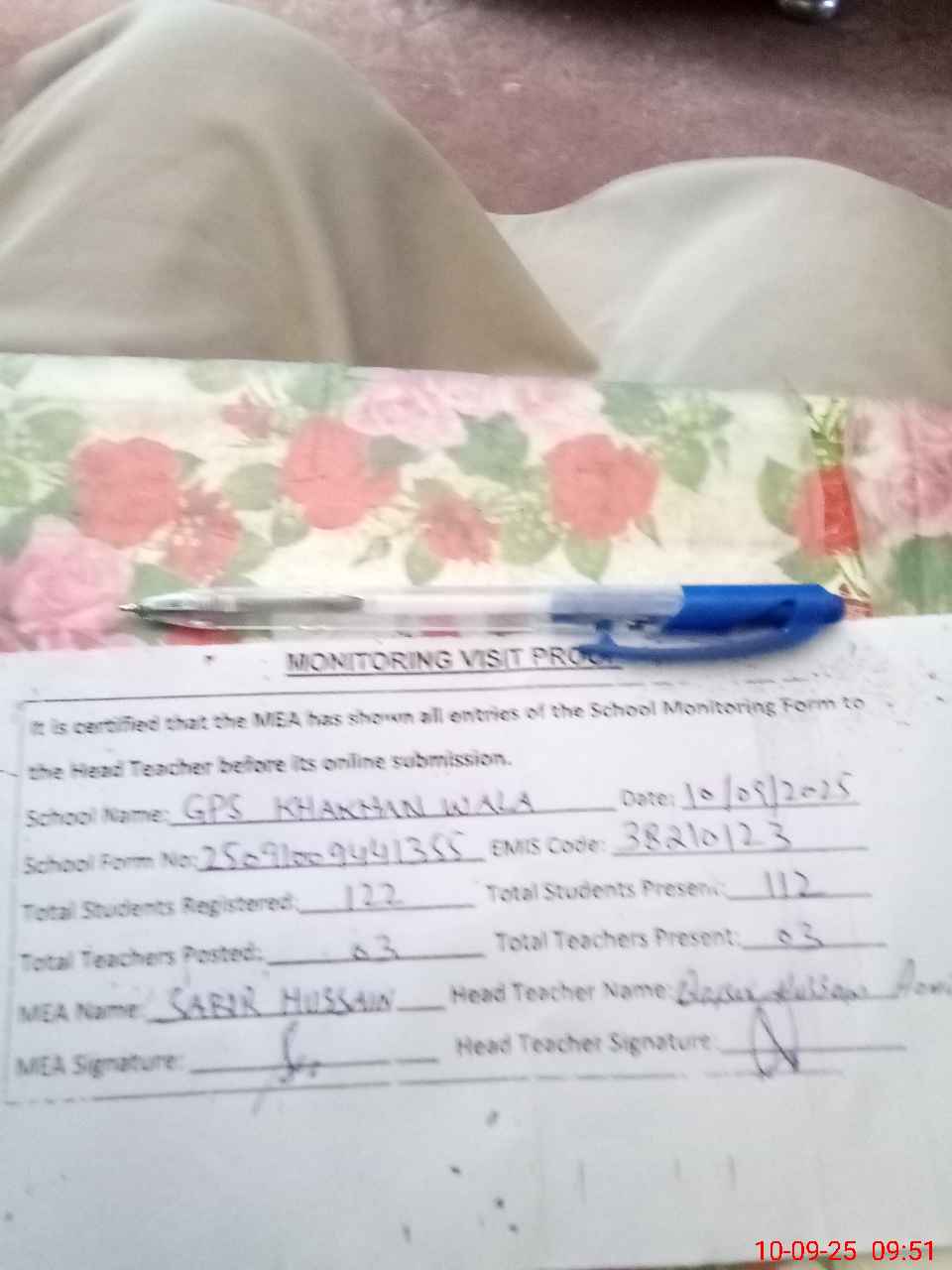 | EMIS Code: 38210123 | Name of School: GPS KHAKHAN WALA | |||