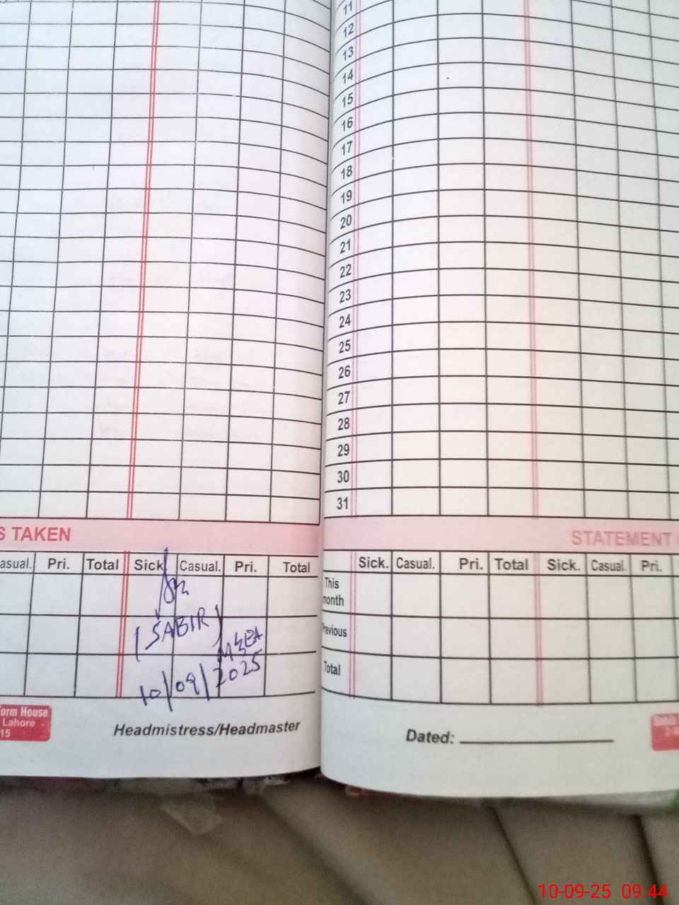 | Leave | Duty | Absent | Maternity | Medical | Ex- Pak |