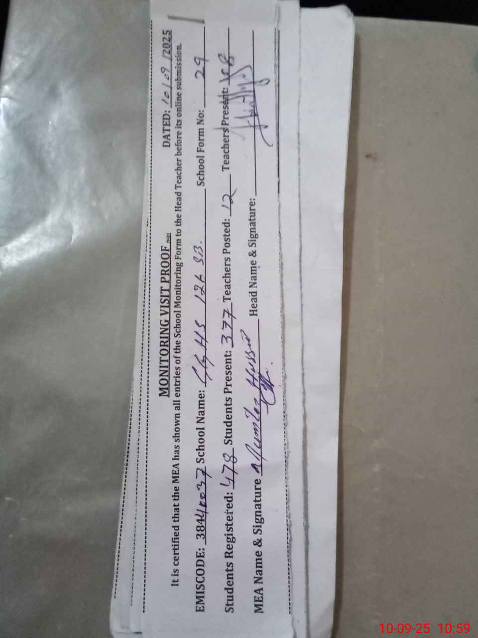 | Certified that this School was Inspected by the Undersigned MEA/DMO Today and the Information Stated Above is as Per Record. | |||||
