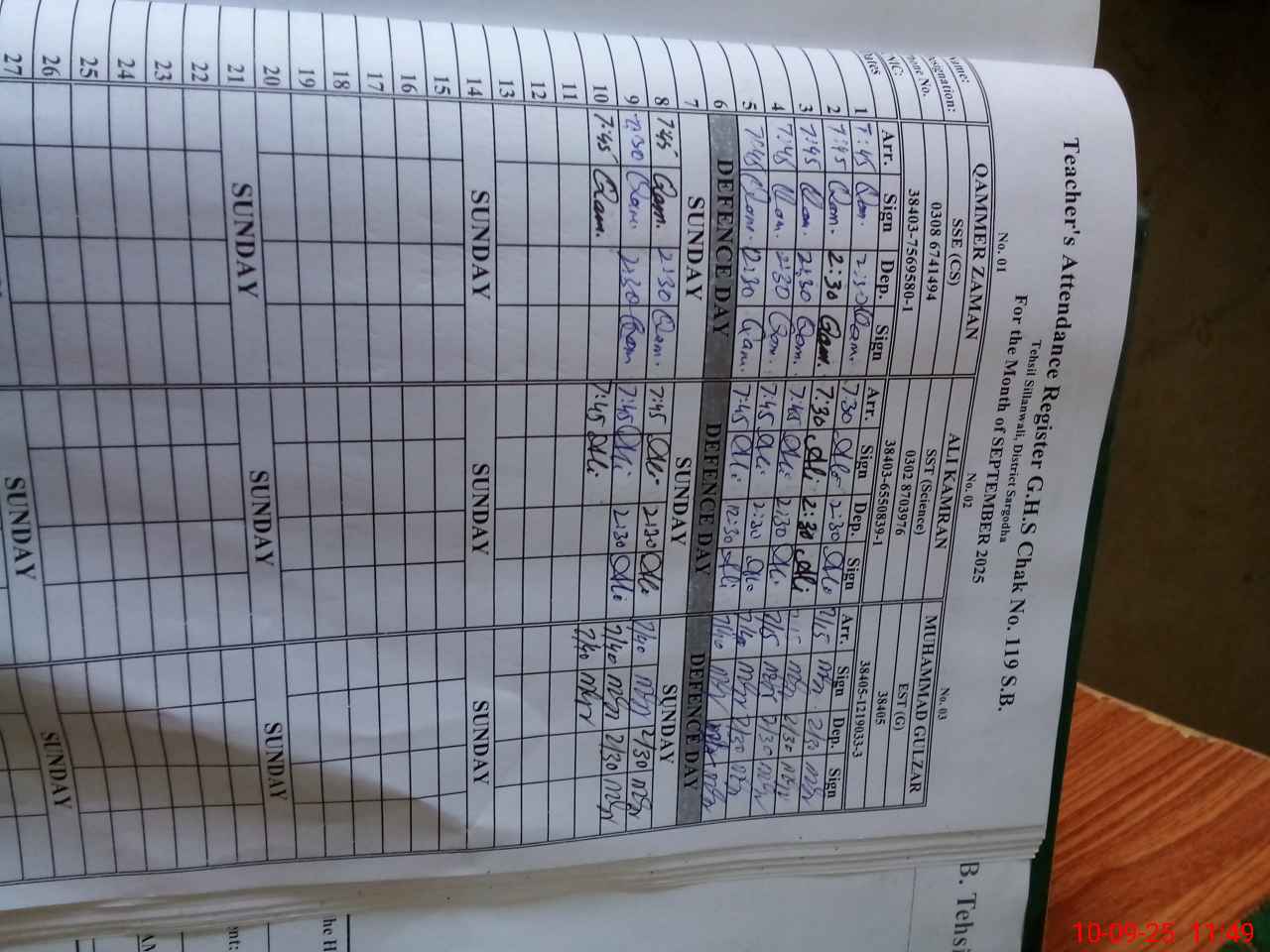 | Name: QA**** ZA**** Designation: (School Headmaster's/Headmistress's) S S E Com Sci Phone/Cell Number: 03**** |