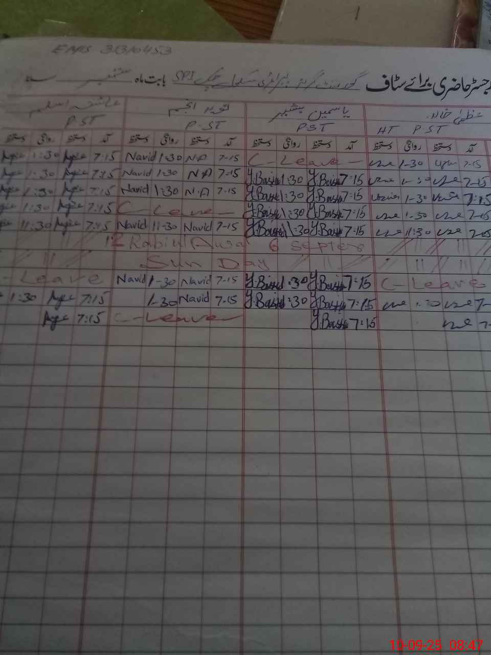 | Name: Uz**** Kh**** Designation: (School Headmaster's/Headmistress's) PST Phone/Cell Number: 03**** |