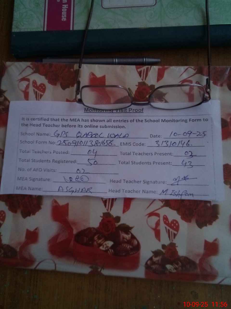 | EMIS Code: 31310146 | Name of School: GPS QABOOL WALA | |||
