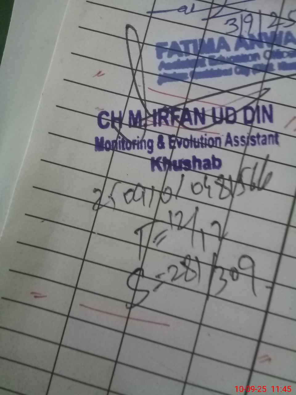 | Monitoring Date: 10-09-2025 | Start Time: 10-09-2025 10:48 AM | End Time: 10-09-2025 11:45 AM | Name of MEA: MU**** IR**** UDDI**** | |