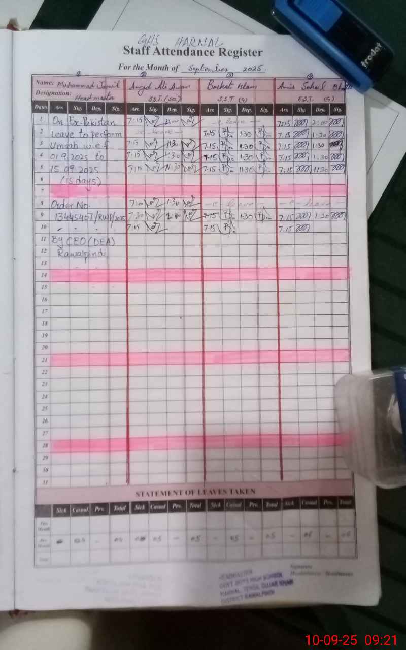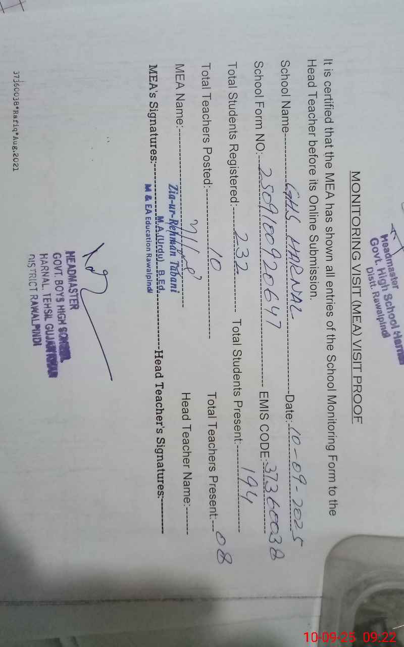 | Name: Ma**** Al**** Aw**** Designation: (School Headmaster's/Headmistress's) HM SST Phone/Cell Number: 03**** |