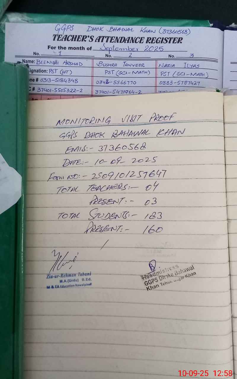 | EMIS Code: 37360568 | Name of School: GGPS DHOK BHAWAL KHAN | |||